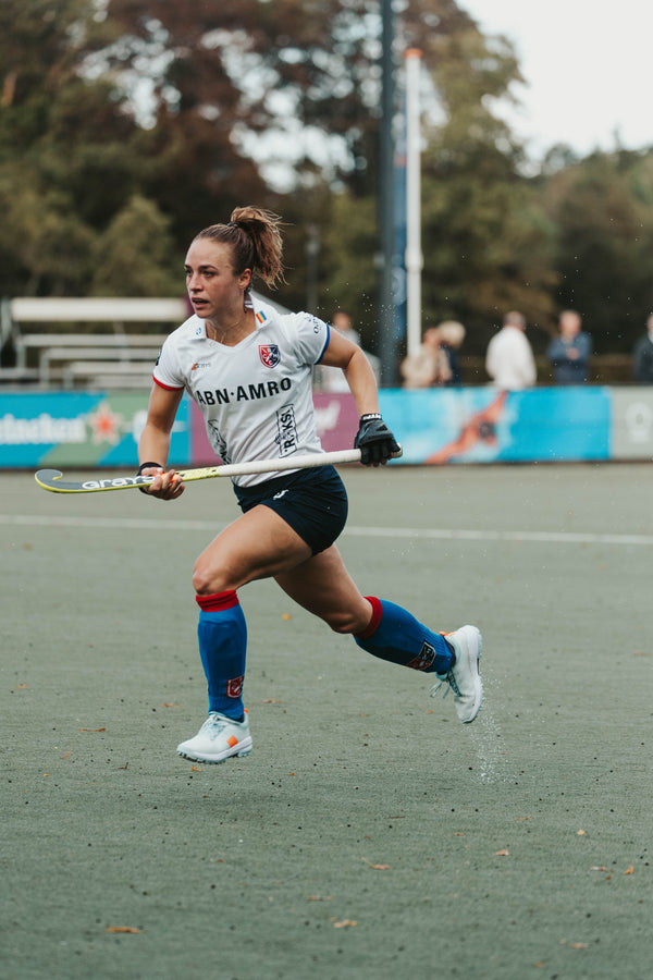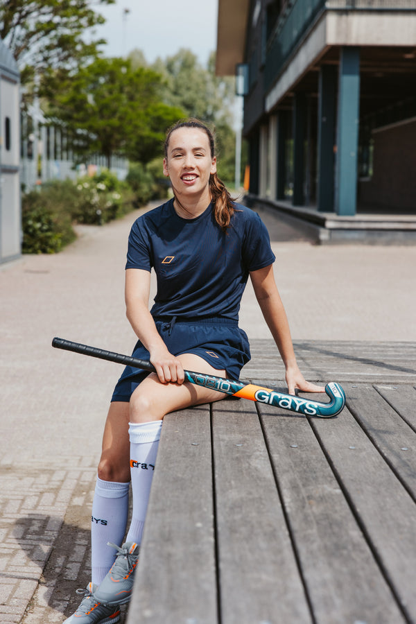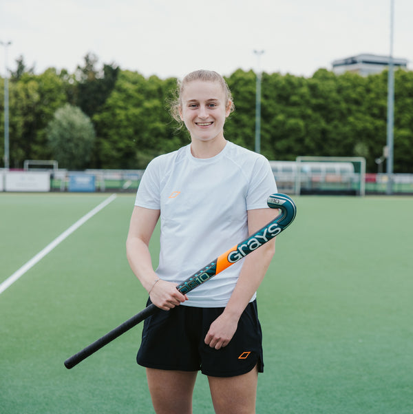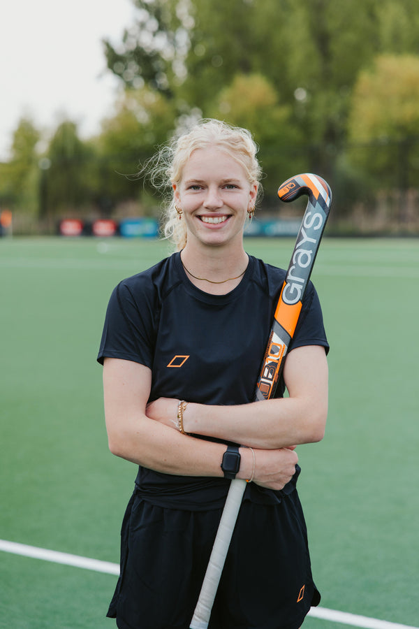 De 21-jarige dynamische aanvallersterTrijntje Beljaars speelt voor Amsterdam in de Hoofdklasse. Ze begon haar hockey carrière bij Oranje-Rood en stapte later over naar SCHC. Met Jong Oranje won ze goud op het WK U21 in 2023 en het EK U21 in 2024. In december 2024 maakte ze haar debuut in het Nederlands elftal tijdens de FIH Pro League in Argentinië. De stick die zij vertrouwt? Grays JB10