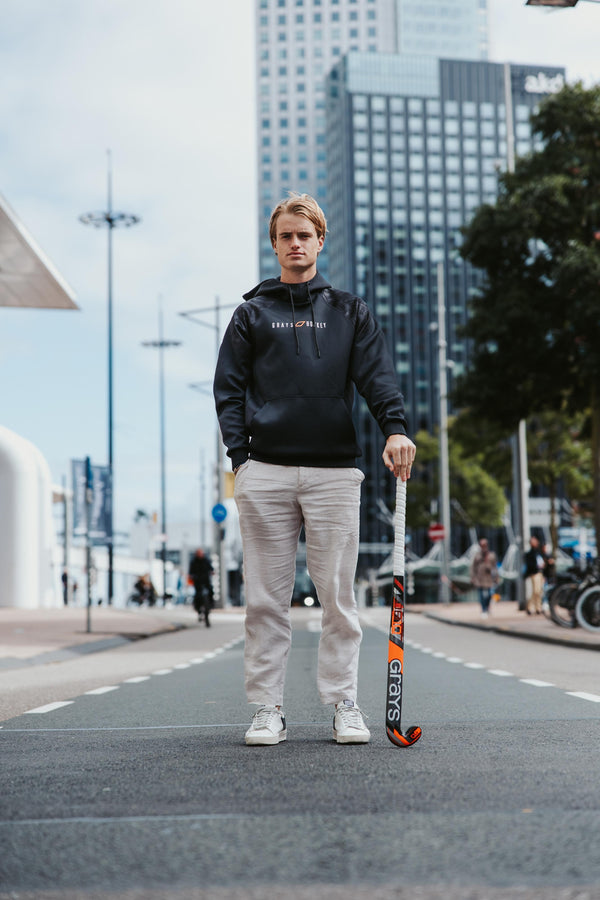 De dynamische aanvaller Guus Jansen begon zijn carrière bij Nijmegen en stapte in 2023 over naar HC Rotterdam. Met zijn snelheid en aanvallende flair ontwikkelt hij zich tot een speler om in de Hoofdklasse in de gaten te houden. De stick die hij het meeste vertrouwt: de Grays JB10.